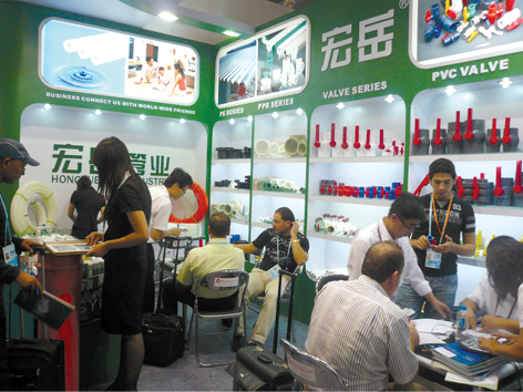 在本届广交会期间,来自欧洲、南美、北美、中东、非洲、东南亚等世界各地的众多客商站在的展位前,拿起精致的MacroAlp系列PPR管材管件,询问不停;更多的客户对齐全的PPR、PVC球阀系列产品包括八角球阀、内螺纹球阀、铜芯球阀、组装阀、蝶阀等纷纷带走样品,购买意向非常明确,另外许多用户在5天展期内在货比多家后,多次来到展位前洽谈购买细节,最终签订合作协议,不但证明了产品的优秀品质得到了客户和市场的检验,同时极大的鼓舞了外贸部所有人员的工作激情和斗志。