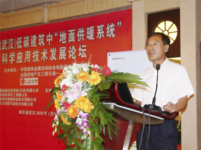 首先,LG化学印周焕部长、武汉建筑节能办公室肖钢主任分别致辞。随后,湖北塑胶有限公司总经理张思良在主席台上发言,他对与会的企业代表感兴趣的,在地暖系统中广泛应用的PE-Xa管、PE-RT管、PE-RT/EVOH阻氧管、地源热泵专用管、预制薄型地暖系统及配套分集水器等公司产品,从目前的发展现况和管材、管件的产品特点,作出了详尽的说明,并现场回答了企业代表提出的关于公司资质、质量保证等方面的问题。当张总发出“欢迎各位嘉宾莅临在孝感开发区的工业园考察指导”的邀请时,现场响起了热烈的掌声。
