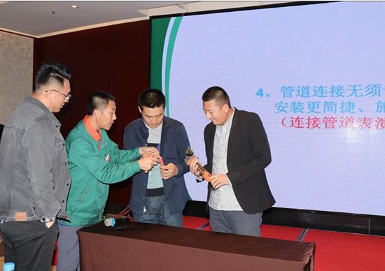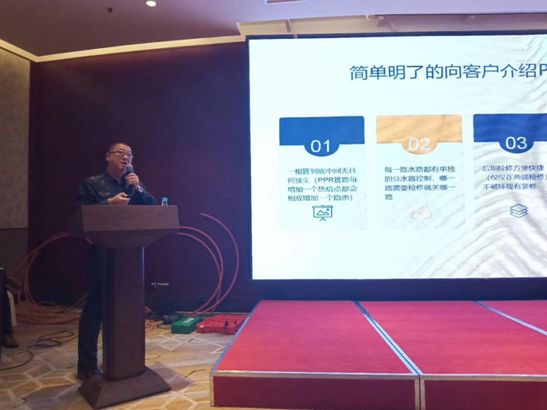 接下来,安博网暖通工程师汪工为大家讲解了1+的施工标准、技术要点及综合产品系统,并着重介绍了1+“PE-Xa致纯冷热水管道系统”头尾一根管、维护更便利等独特优势,通过案例讲解、现场演示等方式,让参会人员切实的感受到不一样的产品、不一样的1+。