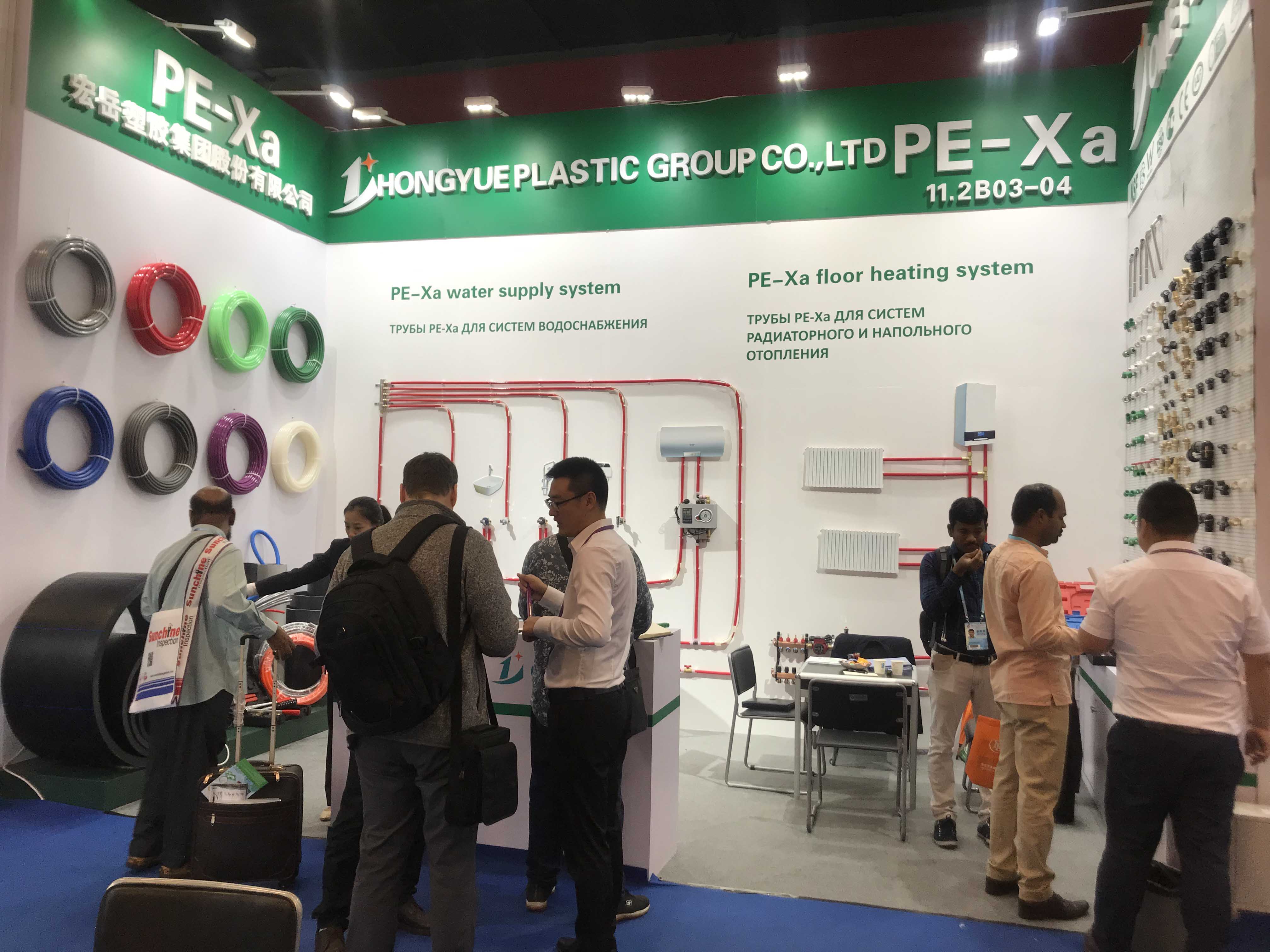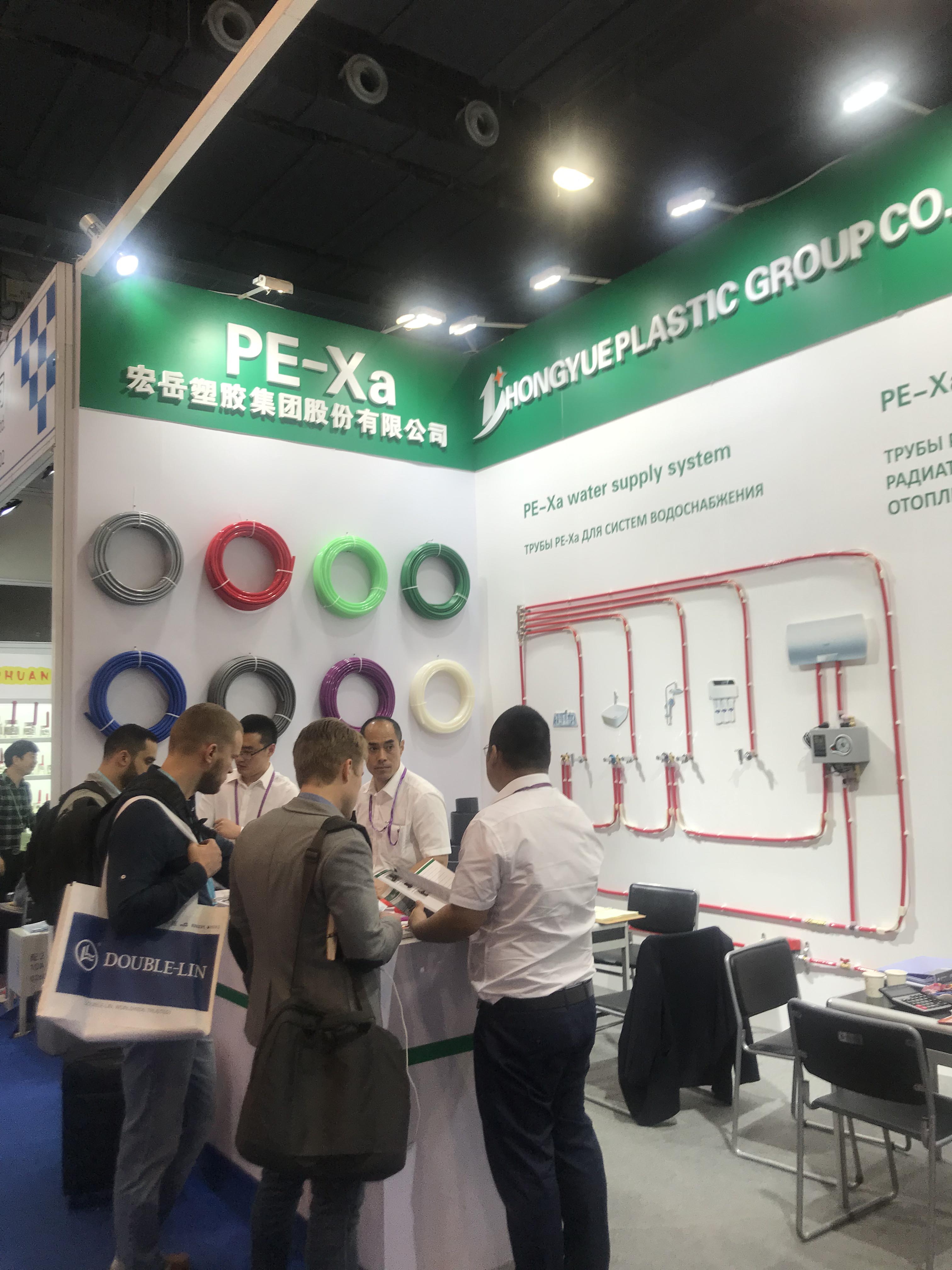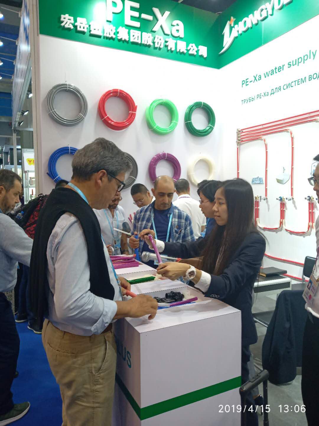 展位前人潮攒动,络绎不绝,来自世界各国的采购商对参展产品表现出了浓厚的兴趣,纷纷驻足了解产品,最吸引各国客商目光的是PE-Xa给水系统。