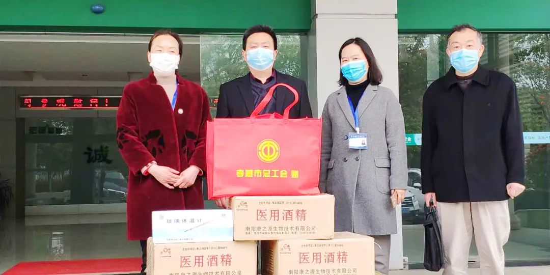 2020年4月2日,孝感市工会党组书记常务副主席孙淑萍、市工会副主席肖继玲、孝感高新区工会主席共同前往湖北塑胶有限公司慰问调研并向公司赠送了一次性医用口罩、医用酒精、水银温度计等防疫物资。