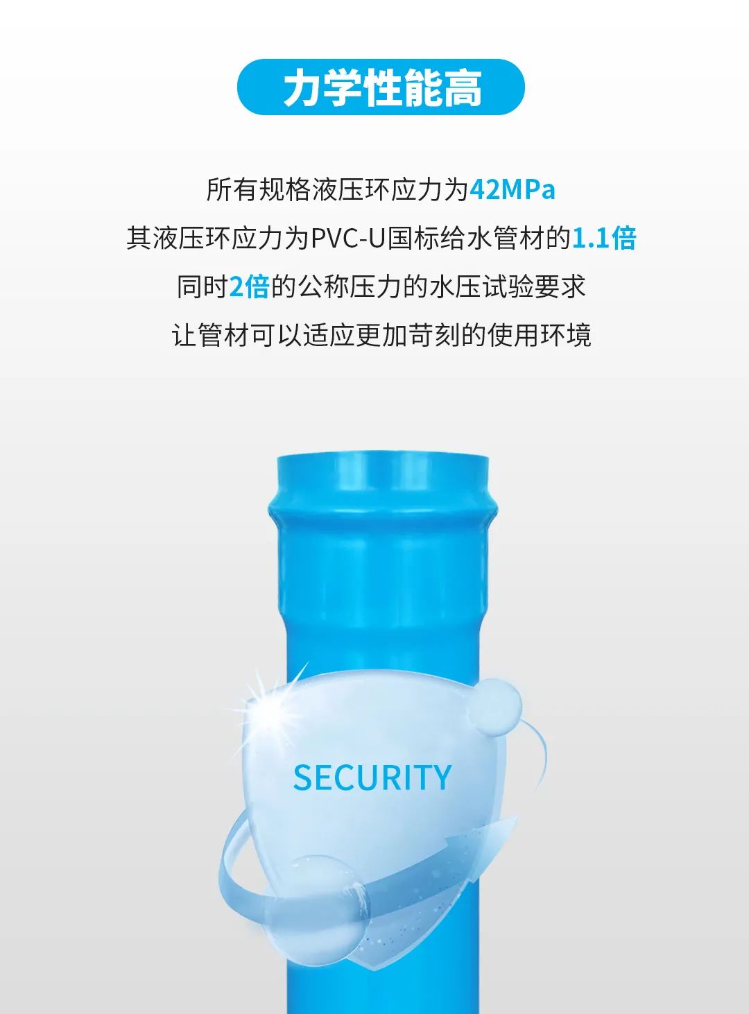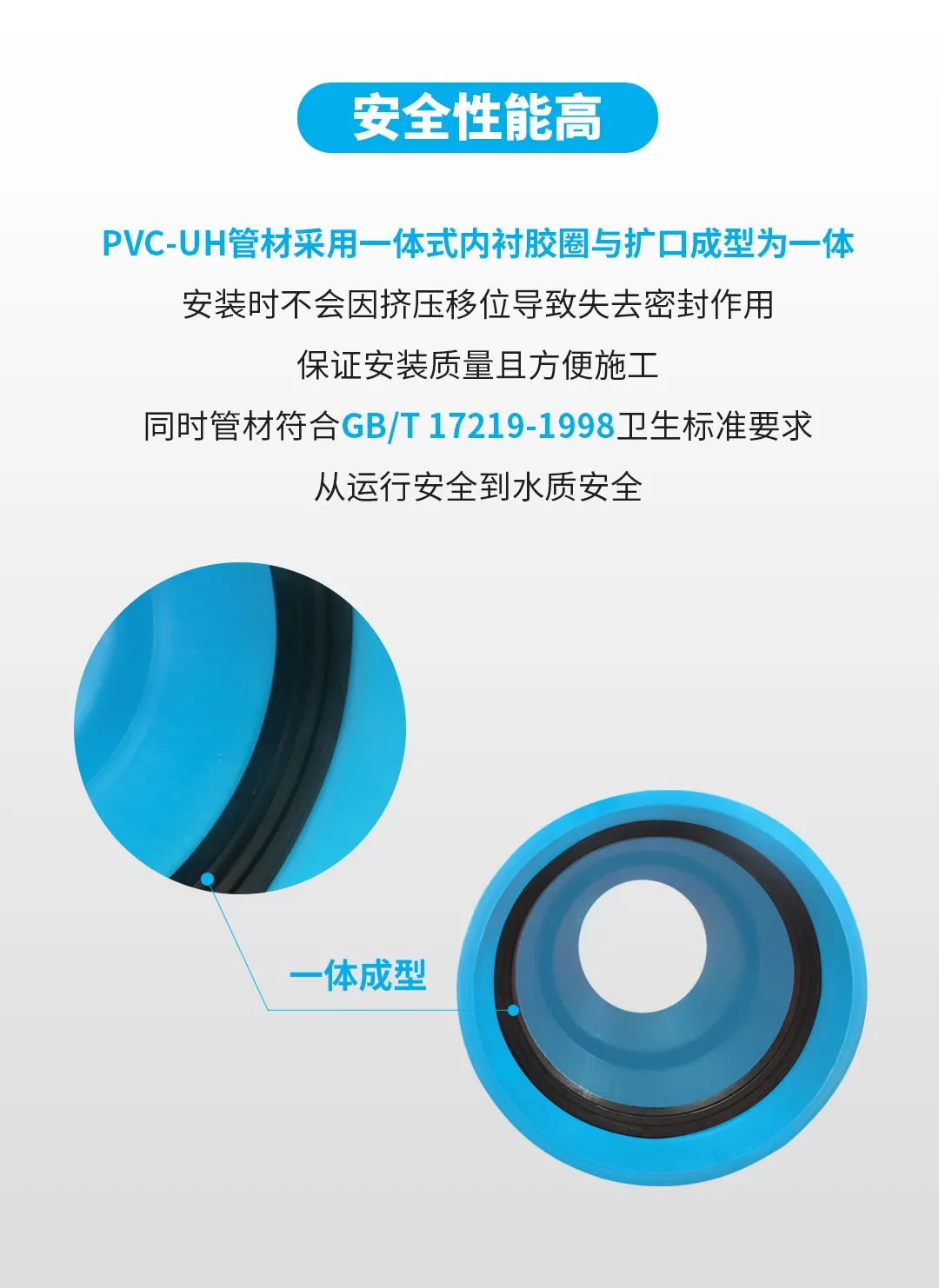 PVC-UH管材自成功开发以来,已应用于自来水管网给水、园林绿化给水、城市管网建设项目等诸多市政工程。将持续为城市建设提供更多更好的管道选择。