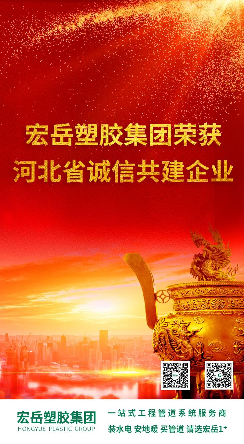 近日,塑胶集团荣获“河北省诚信共建企业”称号,秉承“诚·信·实”的核心价值观,坚守初心,以产品质量为信用基石,以诚信经营为发展理念,持续创新,永续发展!