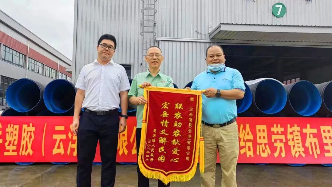 4月26日,塑胶(云浮)公司向云浮市思劳镇布里村委捐赠PE双壁波纹管,及时高效地帮助该村解决了农田灌溉改造项目急需的管道材料。